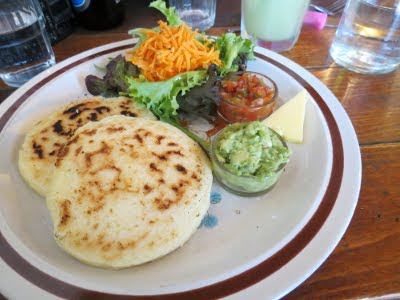 Cindy went amongst the arepas de queso (cheesy arepas, $8.5), amongst a side salad ($2.5).